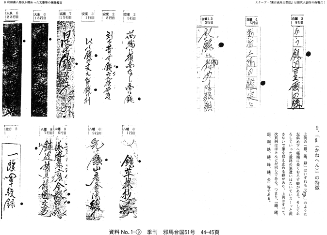 「9、『金(かねへん)』の特徴」〈資料No.1-⑨、季刊邪馬台国51号、P44・P45〉