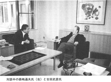 森嶋:それはクェスチョンマークだなぁ。死ぬまでやるのはよいが、途中でいつボケるかわからんよ。私の先生(高田保馬教授)は、死ぬまでやる、頭を使わないとボケると頑張られたが、ボケて来たのが分ったので、静かに引退の勧告に行った。私の勧告が異例で、日本の大学で弟子が先生に「やめてください」と言った例はなかった。